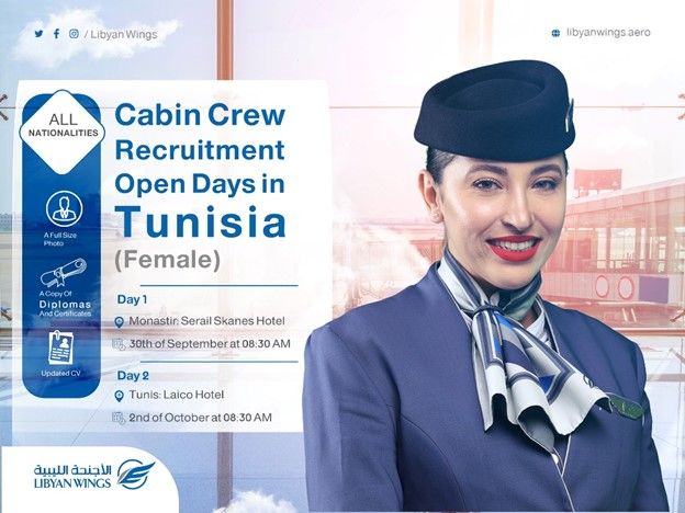 Libyan Wings Airlines is looking for flight attendants to join our crew from Tunisia! If you are …
